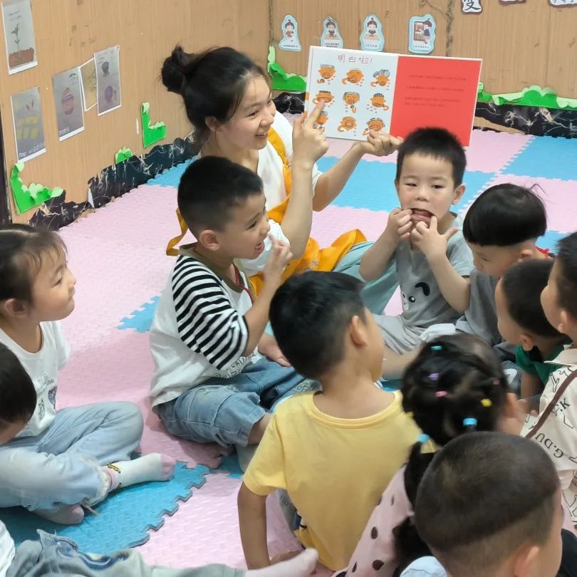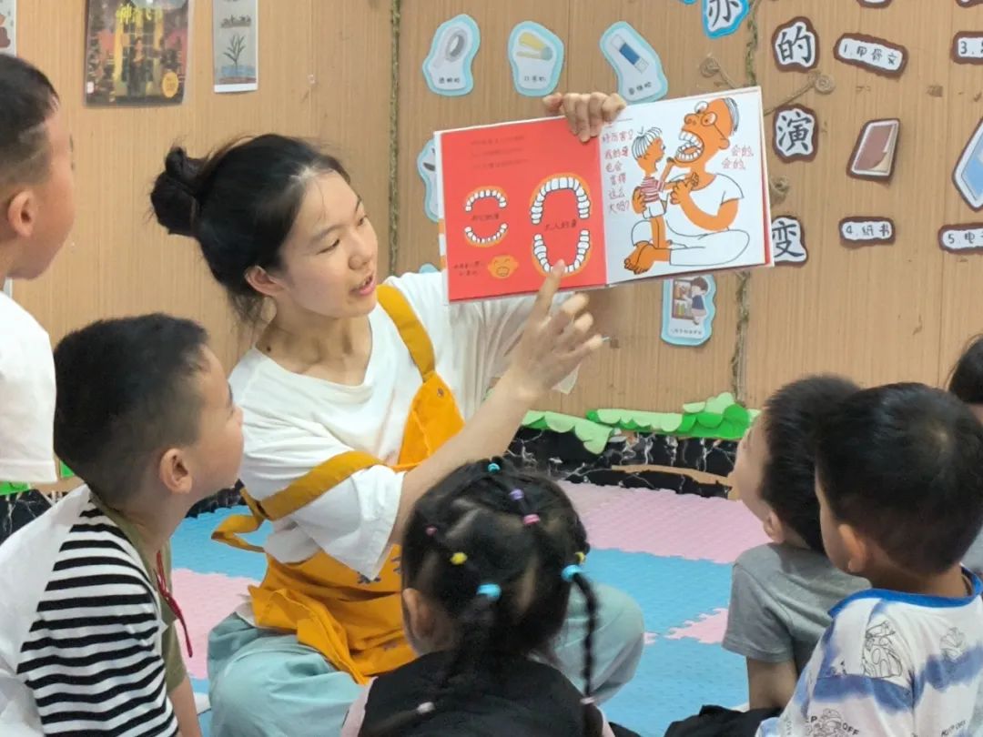 虽然活动过程中孩子们时而拥挤、时而喧闹,但他们专注观察绘本和互相讨论的模样,展现出对牙齿知识的浓厚兴趣。